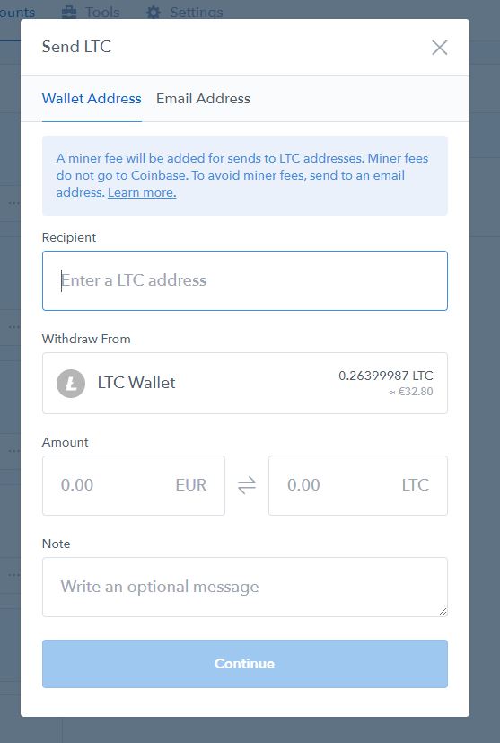 Kliknite na „Send“ unutar Ltc walleta. Pojavit će se sljedeći prozorčić: