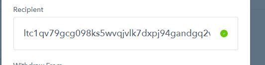 Pod Recipient (primatelj) upišite svoju LTC adresu – onu koju ste prepisali s Coinomi novčanika. Učinite to pažljivo. Možete napraviti copy/paste ako ste je ranije upisali u Notepad, ali provjerite je li sve u redu prije nego što nastavite.