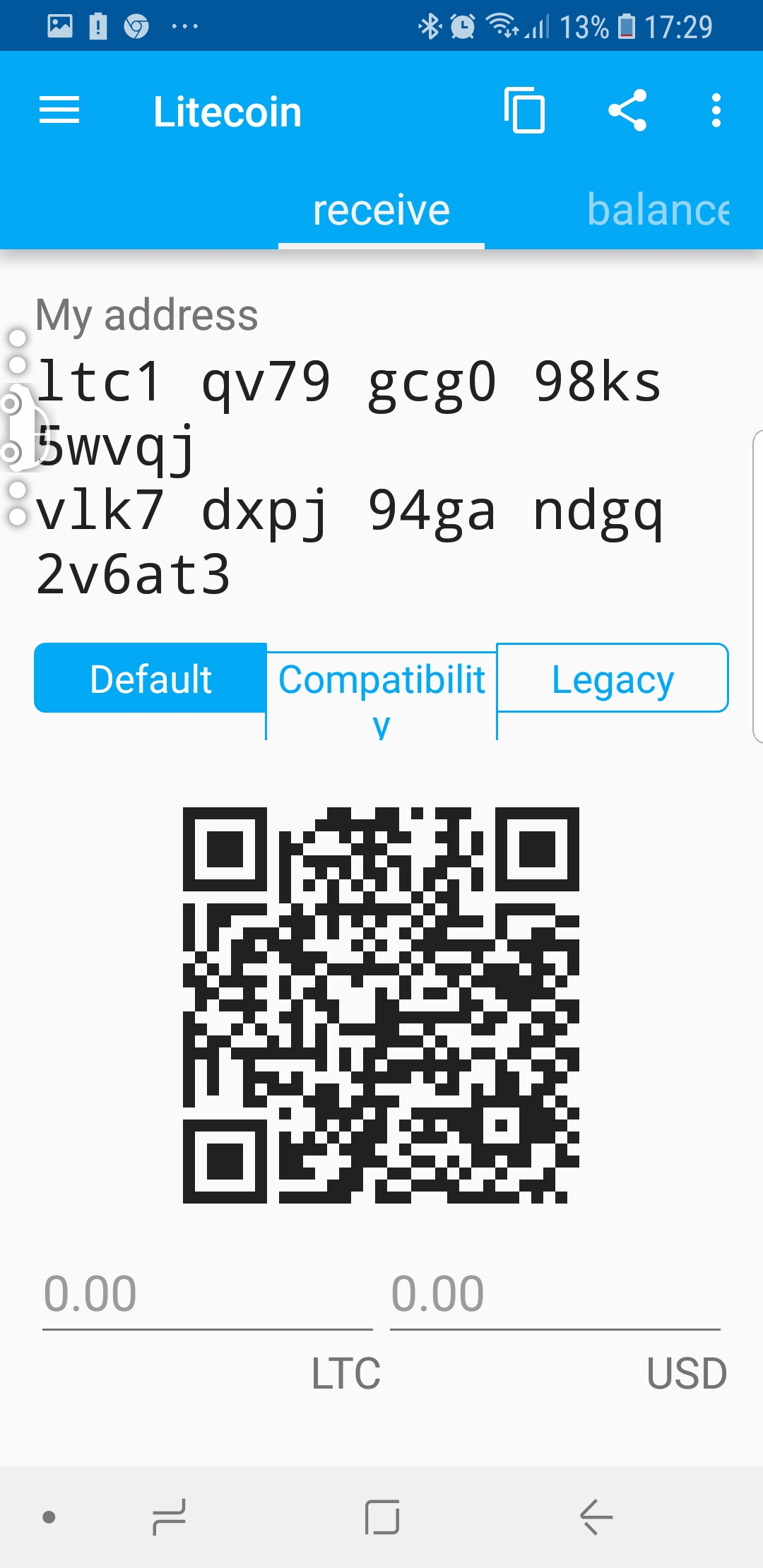 Najprije je potrebno doći do svog „javnog ključa“ u Coinomi mobilnom novčaniku, to jest do svoje adrese na koju ćete poslati Litecoine s mjenjačnice. (Naravno, isti postrupak vrijedi i za drugu kriptovalutu s tim da i u novčaniku Coinomi i na mjenjačnici Coinbase budete unutar one kriptovalute s kojom radite.)