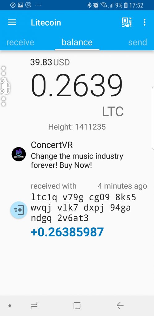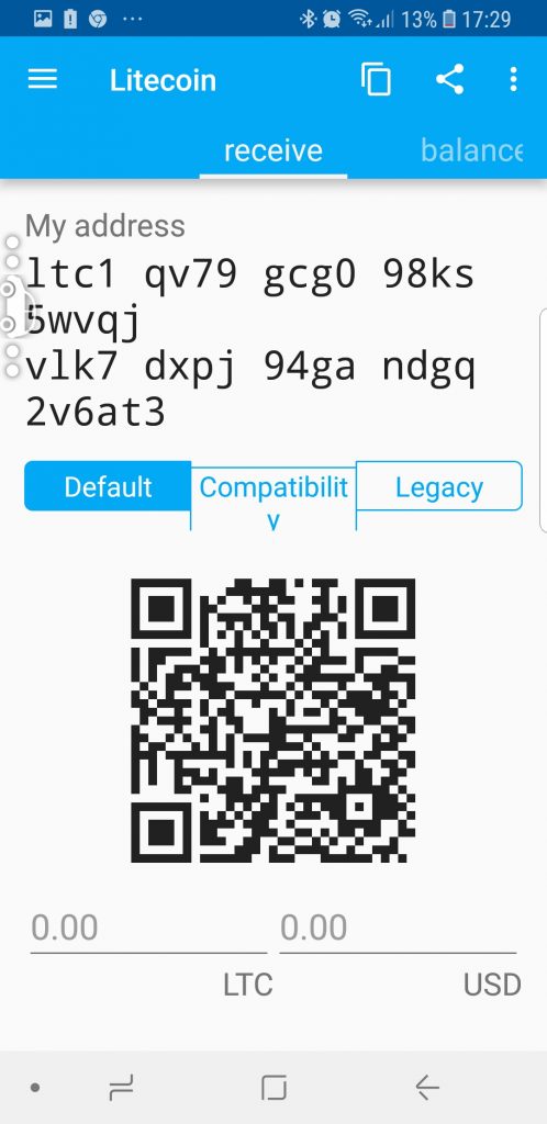 Ako dodirnete Litecoin, pokazat će vam se sljedeći ekran: