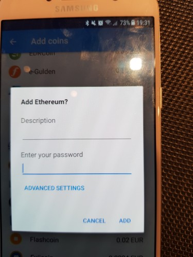 Da biste dodali novu kriptovalutu, Coinomi traži lozinku. Upišite je i kliknite ADD.