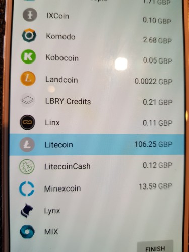Kad završite s izborom kriptovaluta, kliknite FINISH.