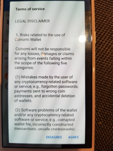 Da bi vas Coinomi sačuvao od vlastitih pogrešaka, u dnu ekrana bit će rečenica „I have safely stored my recovery phrase.“ (Sačuvao sam i pohranio na sigurno svoju frazu za obnovu.)